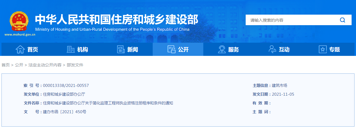 日前,住建部網(wǎng)站公布了《關(guān)于簡化監(jiān)理工程師執(zhí)業(yè)資格注冊程序和條件的通知》,將監(jiān)理工程師注冊的程序和條件進(jìn)行了優(yōu)化,原文如下: